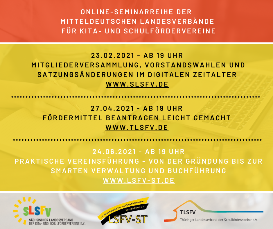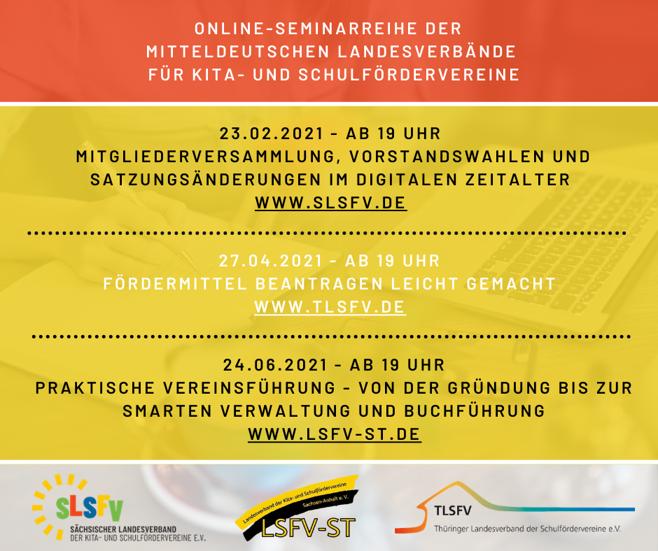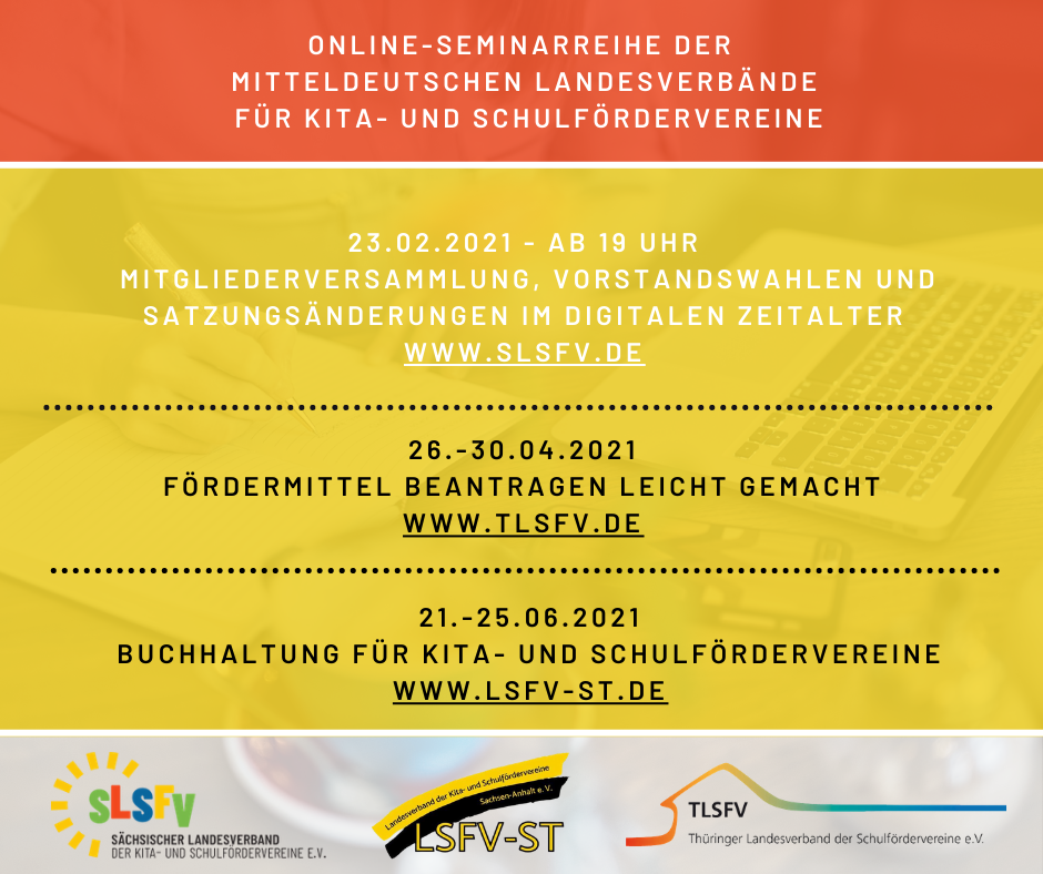 Der Sächsiche Landesverband der Kita- und Schulfördervereine e.V. (SLSFV) lädt Interessierte aus dem ganzen Bundesgebiet ein zur Informationsveranstaltung (Online):